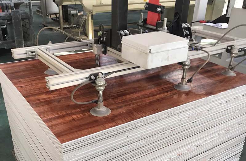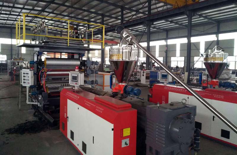 PVC石塑地板四輥加一輥生產(chǎn)線設(shè)備,擠出基材,熱敷彩膜裝飾層和耐磨層,實(shí)現(xiàn)一步法,在同一臺設(shè)備上同時完成。第一,表面可熱敷上各種不同顏色的彩膜裝飾層;第二,可直接在板材裝飾層上熱敷耐磨層;第三,可直接做上各種各樣浮雕木紋及各式各樣的花紋;第四,底層軟墊消音層,也可直接熱敷上去。以上四條均可同時在一條生產(chǎn)設(shè)備上完成多層結(jié)合為一體。可減少表層處理花紋,耐磨的設(shè)備。減少人工及設(shè)備的投資,大大降低PVC地板生產(chǎn)成本。